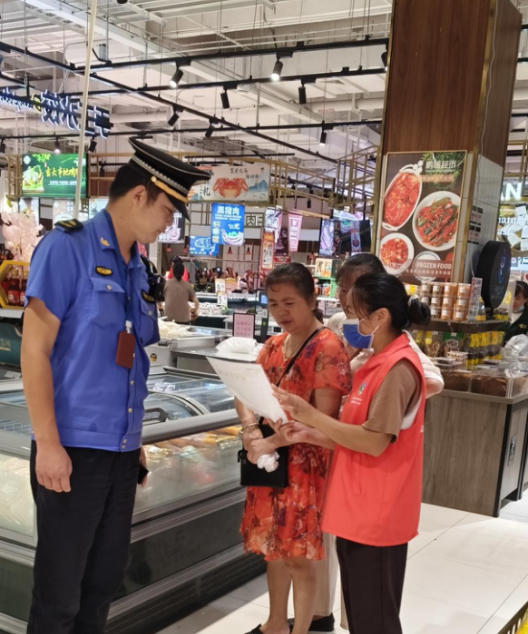 活动当天,招贤镇综合行政执法队的工作人员在超市入口处设置了醒目的宣传展板,吸引了不少顾客的注意。他们身着统一的绿色马甲,手持垃圾分类宣传手册,热情地向顾客们介绍垃圾分类的重要性和具体方法。同时,超市内也通过广播、电子屏等多种方式播放垃圾分类的宣传信息,营造出浓厚的环保氛围。