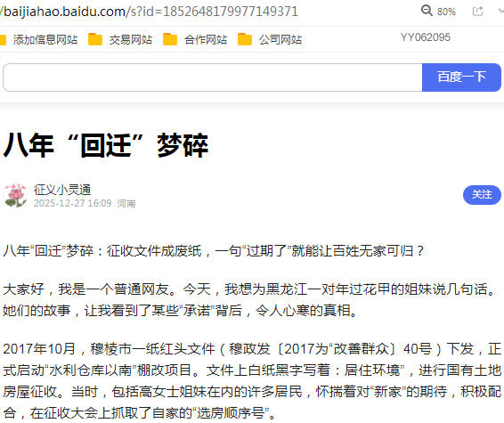 老百姓的房子,不是可以随意处置的“资产”;老百姓的信任,更不是可以随意挥霍的“资源”。请给这对等了八年的姐妹,一个能够触摸到的“家”。